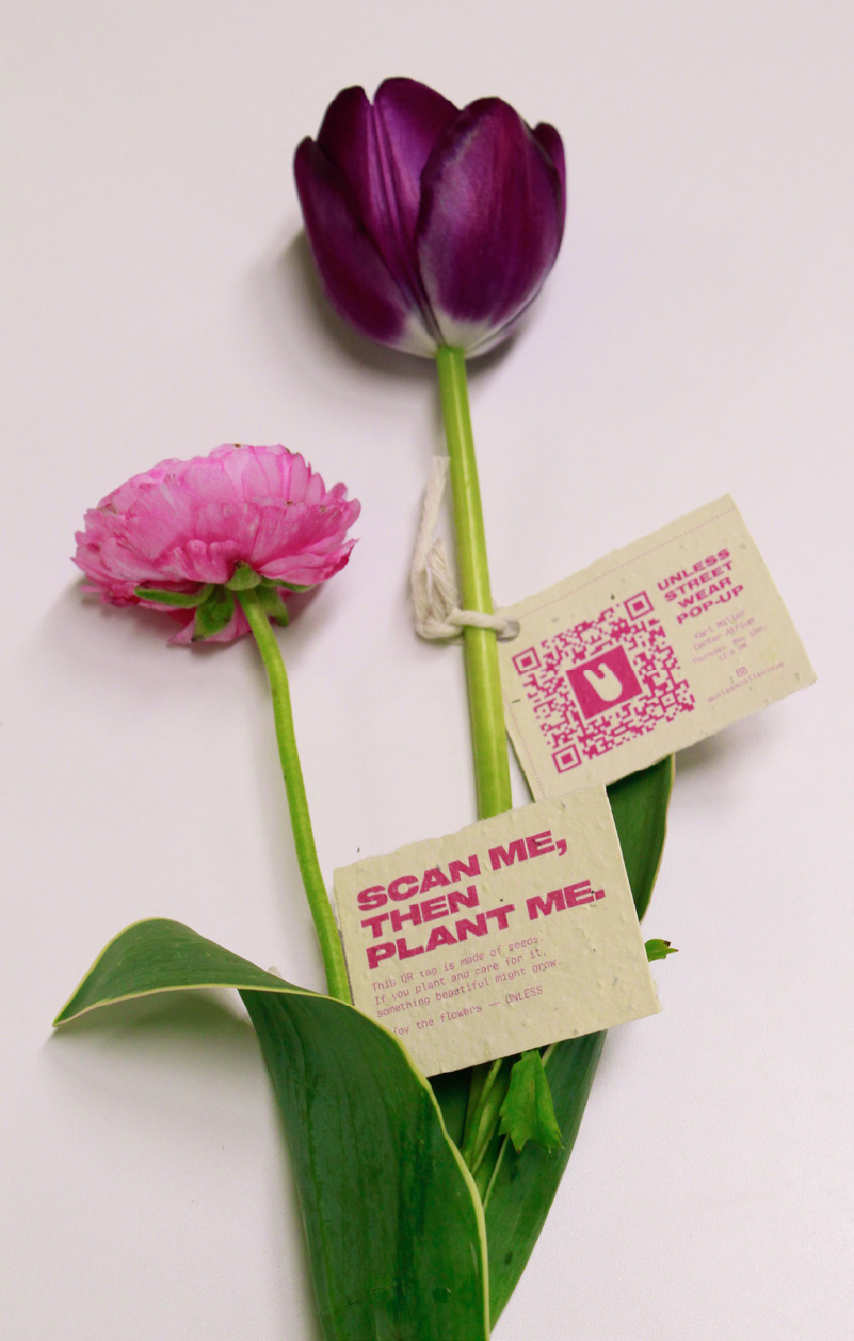 Over three short months, our six-person team worked with UNLESS executives and Portland State University administration to plan, promote, and execute a “pop-up in a box” style event that included moss graffiti infographic panels, a logo-themed garden box to showcase products, and ethically grown flowers with tags printed on seeded paper to generate week-of-event buzz. In all, the event generated over 1,000 impressions and more than $2,500 in revenue for UNLESS.
