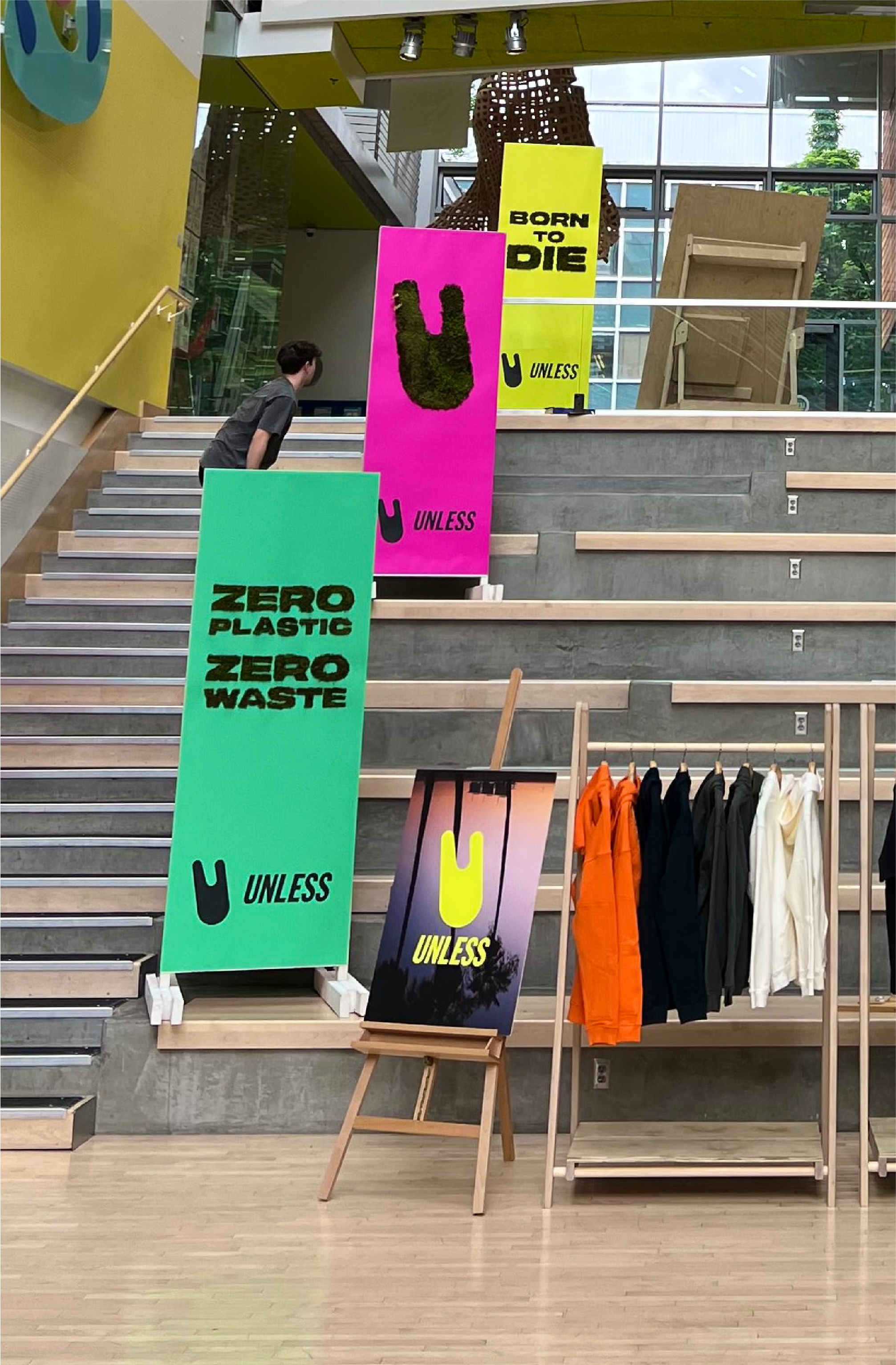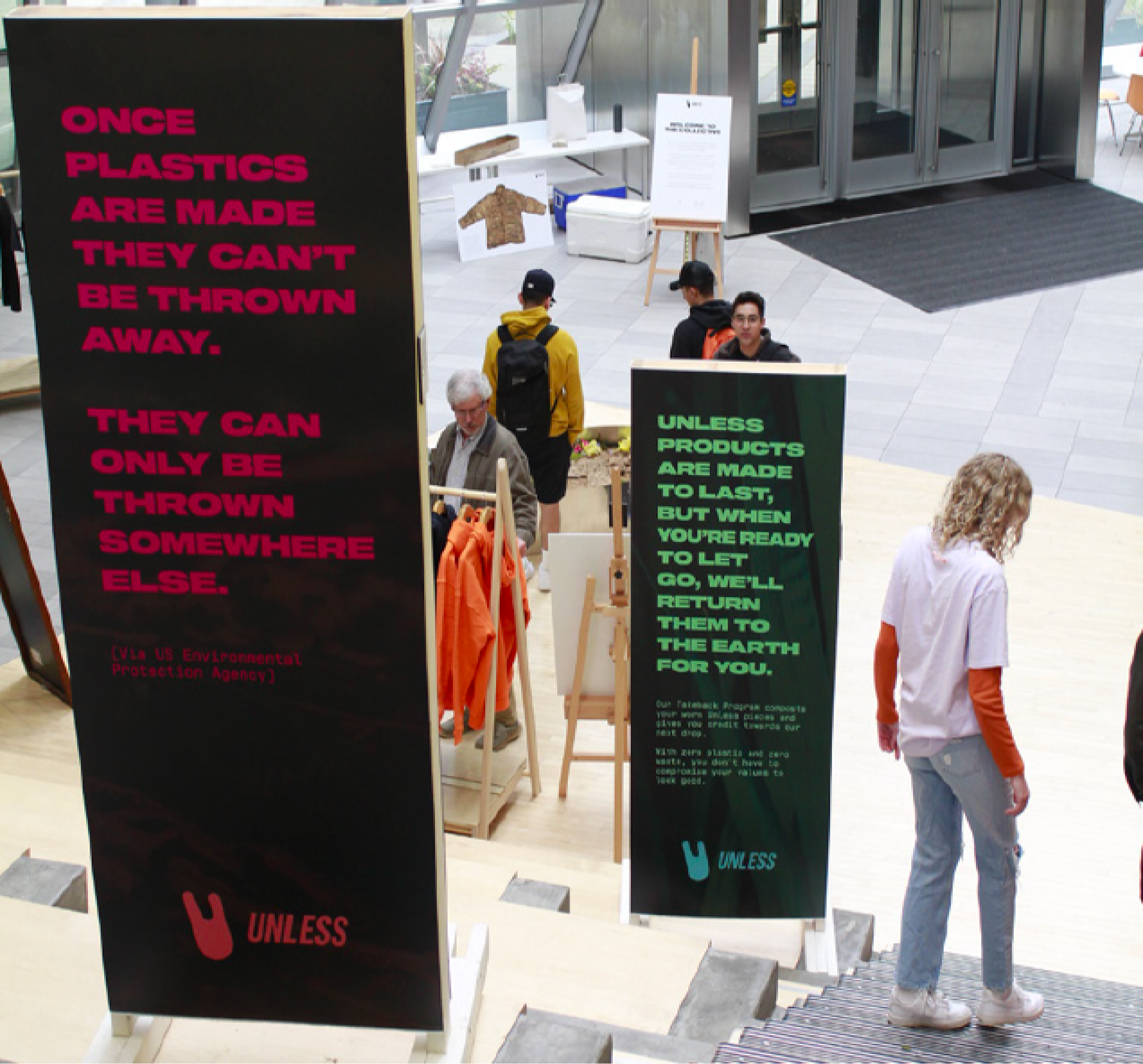 UNLESS, the world’s first fully plant-based streetwear brand, came to FIR Northwest looking to use their products to tell their story of a zero-waste future to a new audience: college students. Disillusioned and disconnected from spending the past two years at home, this demographic was a catalyst for UNLESS’s vision, and they needed to be swayed.